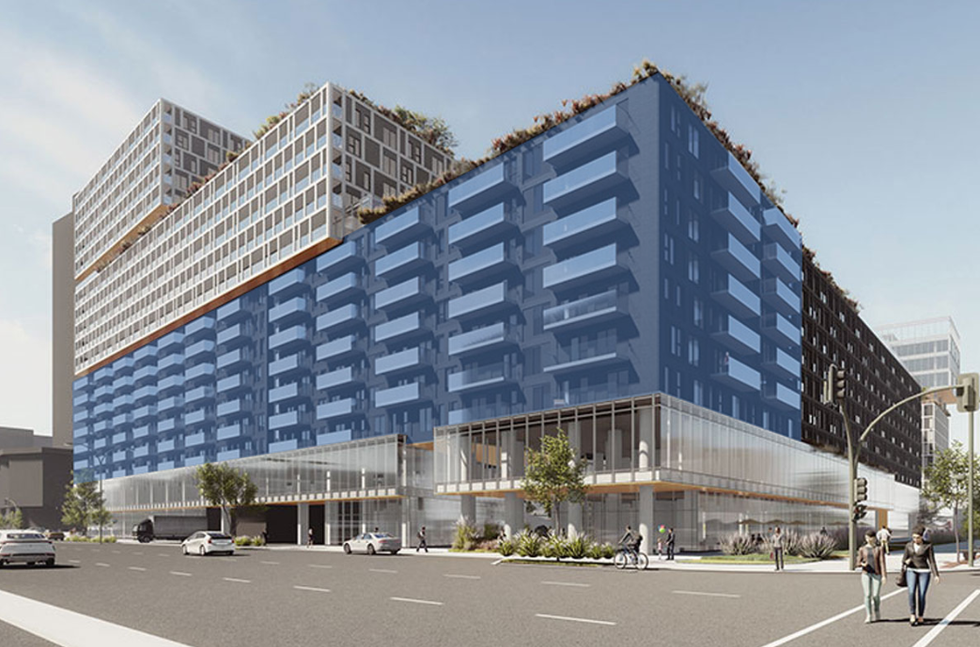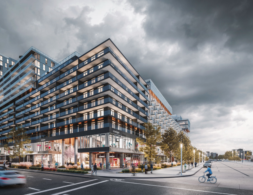 C'est un vrai petit village qui émerge à côté du métro et de la Place Bell. Il comptera 1,3 million de pieds carrés, des tours composées de 5 à 18 étages et 3 types d'hébergement pour un total de 694 unités.