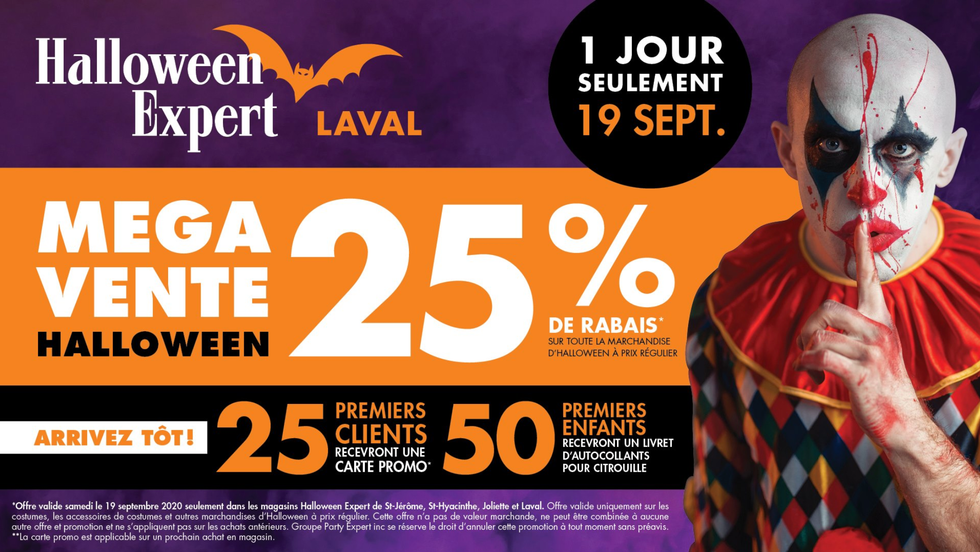La boutique Halloween Expert ouvre cette fin de semaine à Laval et offre 25 % de rabais à tous ceux qui s'y prennent tôt.