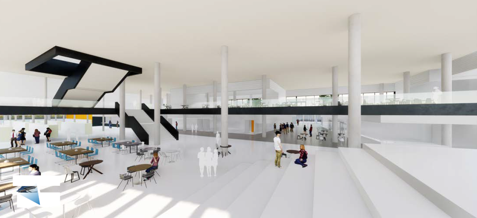 On prévoit de grands espaces communs intérieurs et extérieurs « inspirés des campus américains » pour ce projet d'un investissement total de 230 M$.