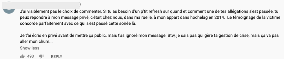 Le youtubeur y mentionne qu'il ne connaît toujours pas l'identité de la personne ayant formulé les accusations en juillet dernier.