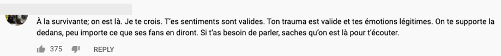 Afin de démontrer leur appui, des dizaines d'internautes se mobilisent pour encourager et valider les sentiments des personnes qui auraient pu être affectées par les gestes dont on l'accuse.