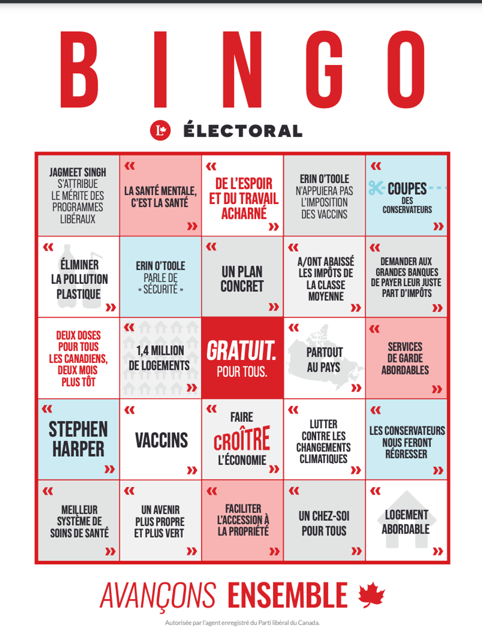 Les libéraux partagent un bingo pour le débat des chefs et aucun parti n'est épargné