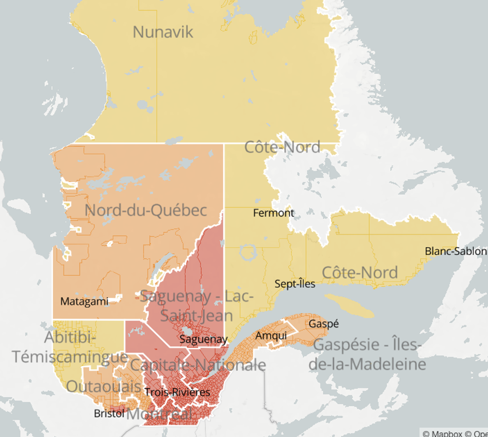 Voici les régions du Québec qui ne sont pas en zone rouge, selon les données fournies par le gouvernement.