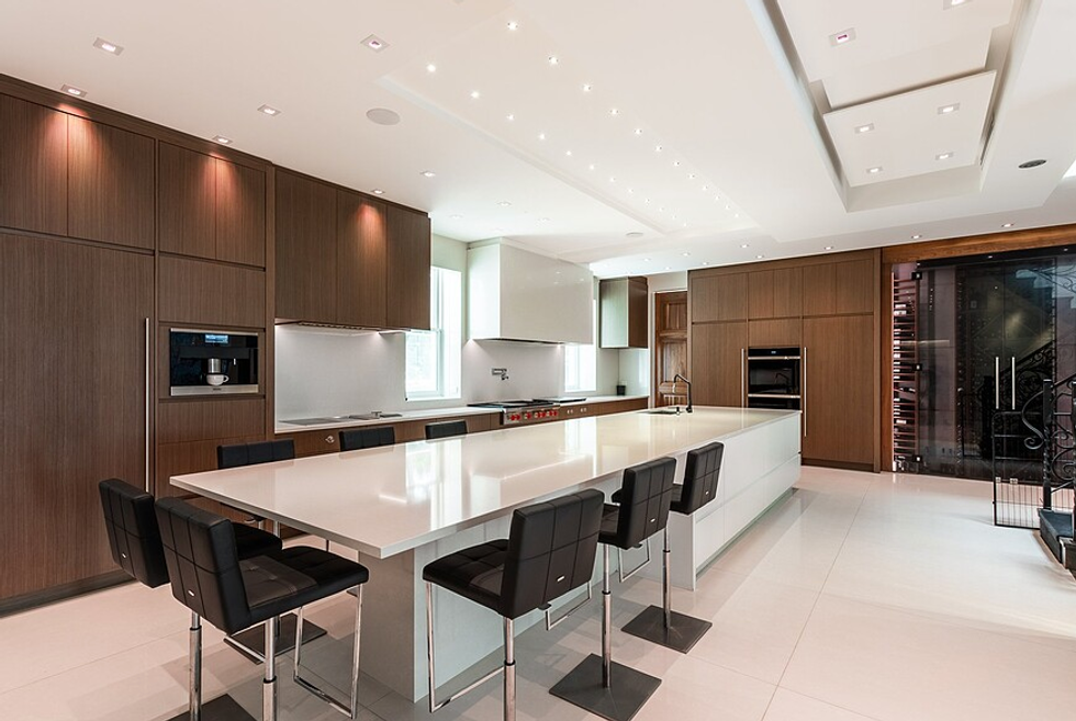Le foyer possède une cuisine gastronomique avec un ilot central fait sur une dalle de quartz et une cave à vin intégrée avec salle de dégustation.