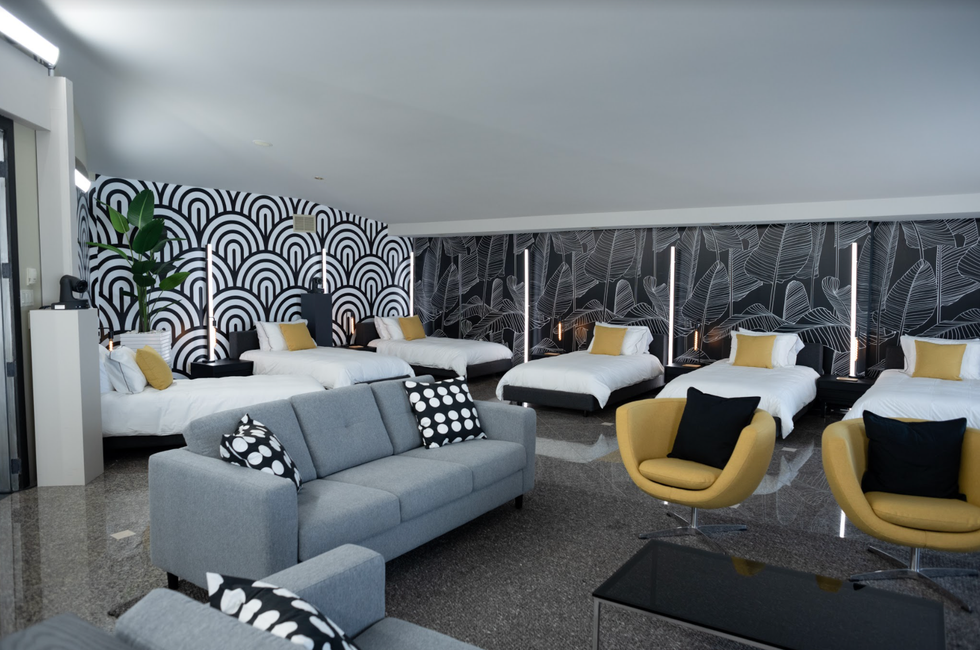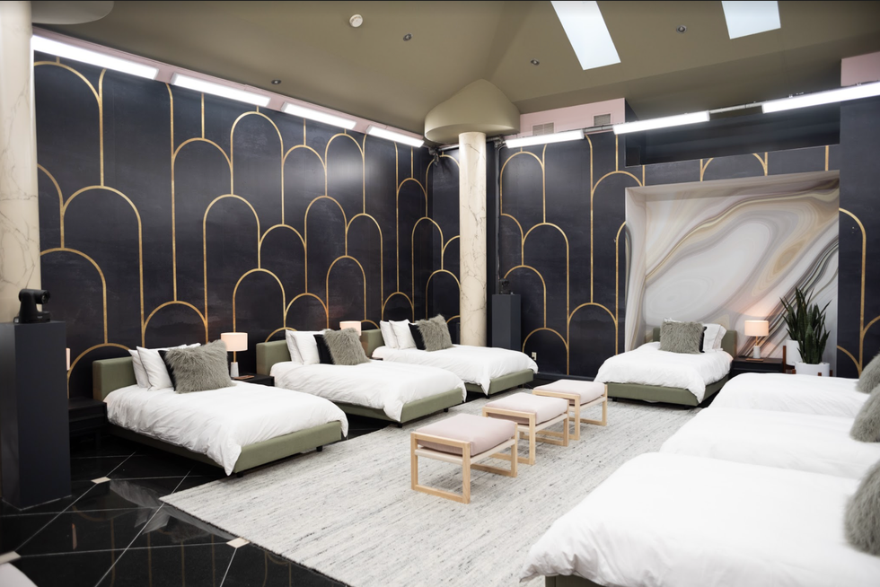 Les filles séjourneront dans un magnifique dortoir vieux rose, doré, gris et noir avec des détails en marbre digne de Pinterest.