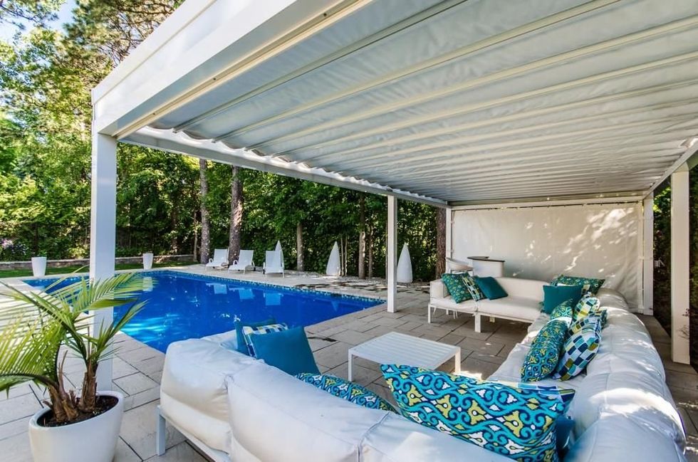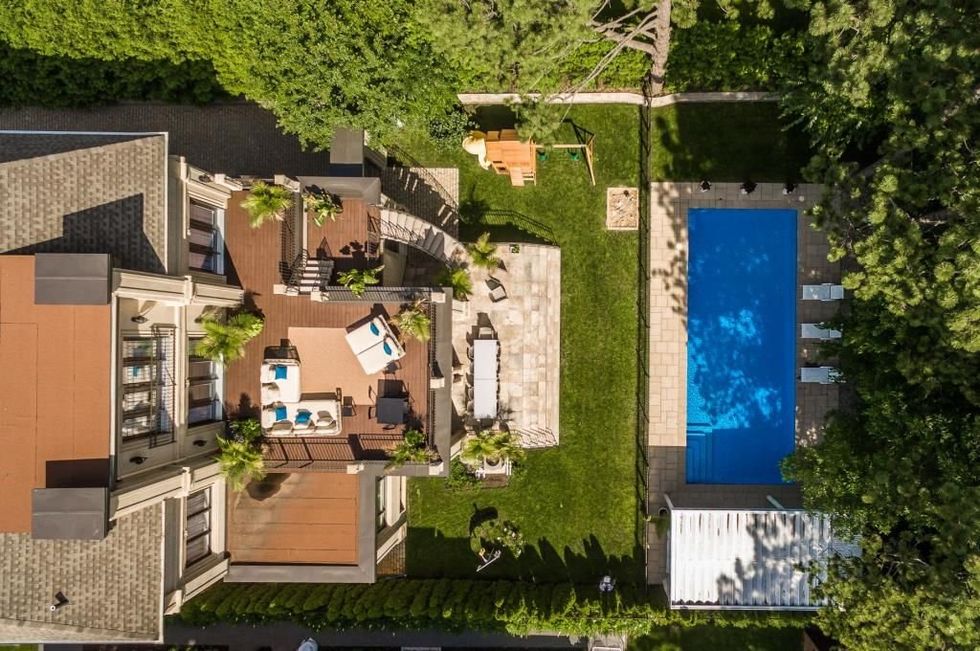 La cour arrière ressemble à une parfaite oasis où recevoir les meilleures soirées BBQ ou pool party.