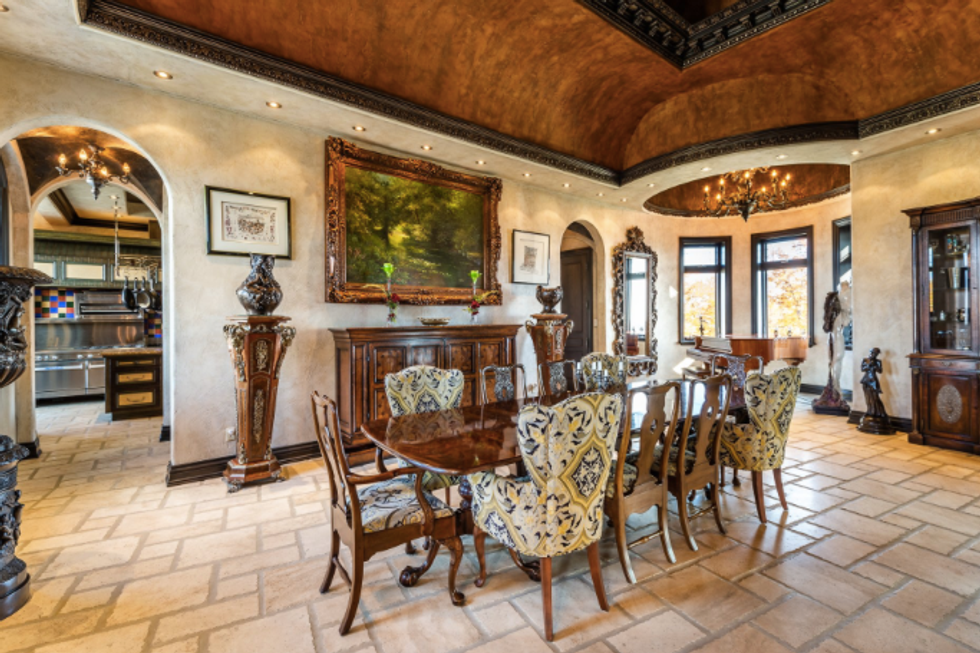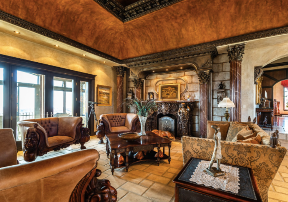 Description: Cette gigantesque propriété à vendre est décorée comme un château d'époque. La vue est juste irréaliste puisque la demeure est perchée en haut d'une montagne.