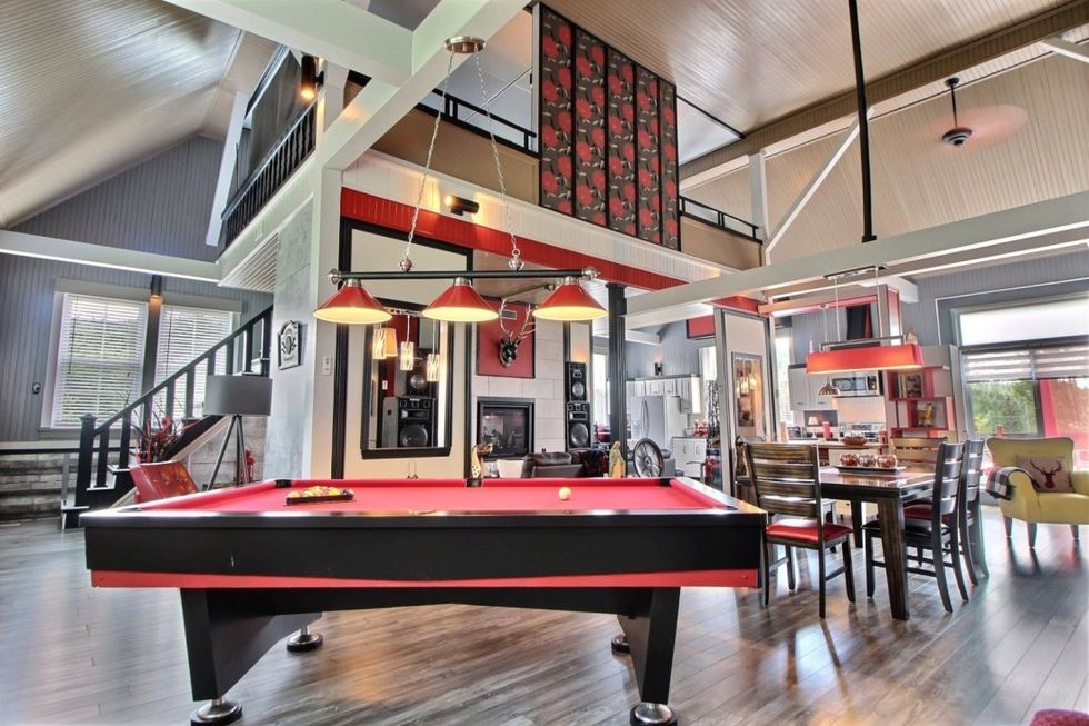 La table de billard placée au beau milieu de la pièce et le salon digne d'un cinéma privé promettent des après-midi à la maison très divertissantes.