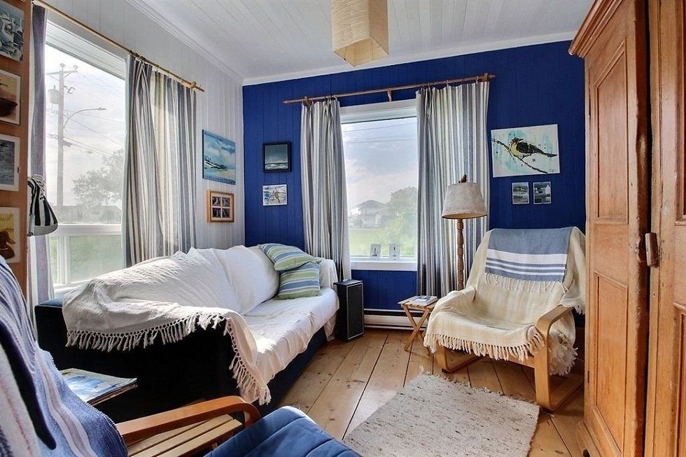L'intérieur a l'air chaleureux à souhait avec son caractère rustique, les planchers de bois qu'on y trouve et les nombreuses touches de couleurs.