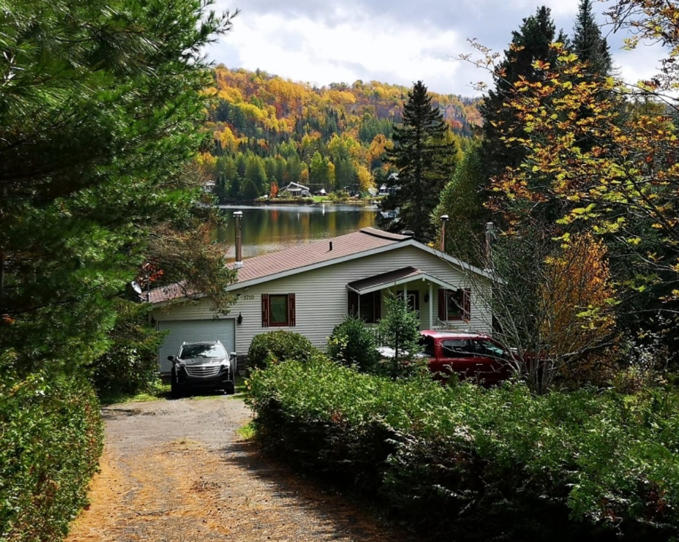 Cette magnifique propriété a un accès au Lac Ménard. Cette maison des Laurentides est très rustique à l'intérieur, et ça fait son charme!
