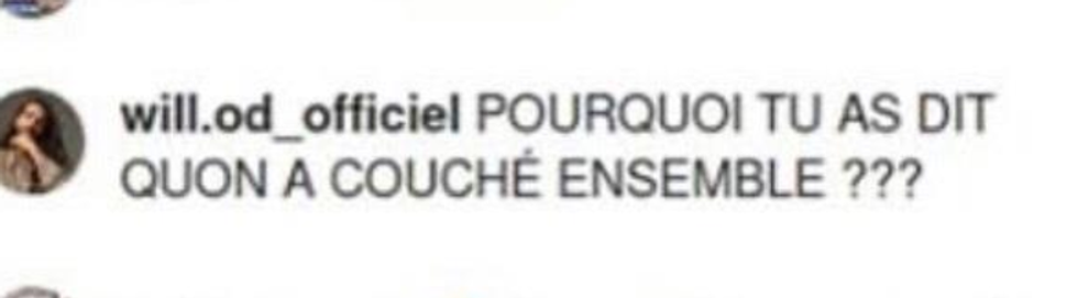 Si Martine était très confortable à l'idée de partager cette information, Will n'avait pas l'air de cet avis. Il a commenté la vidéo, en live, avec un message clair : « POURQUOI TU AS DIT QU'ON A COUCHÉ ENSEMBLE ??? »
