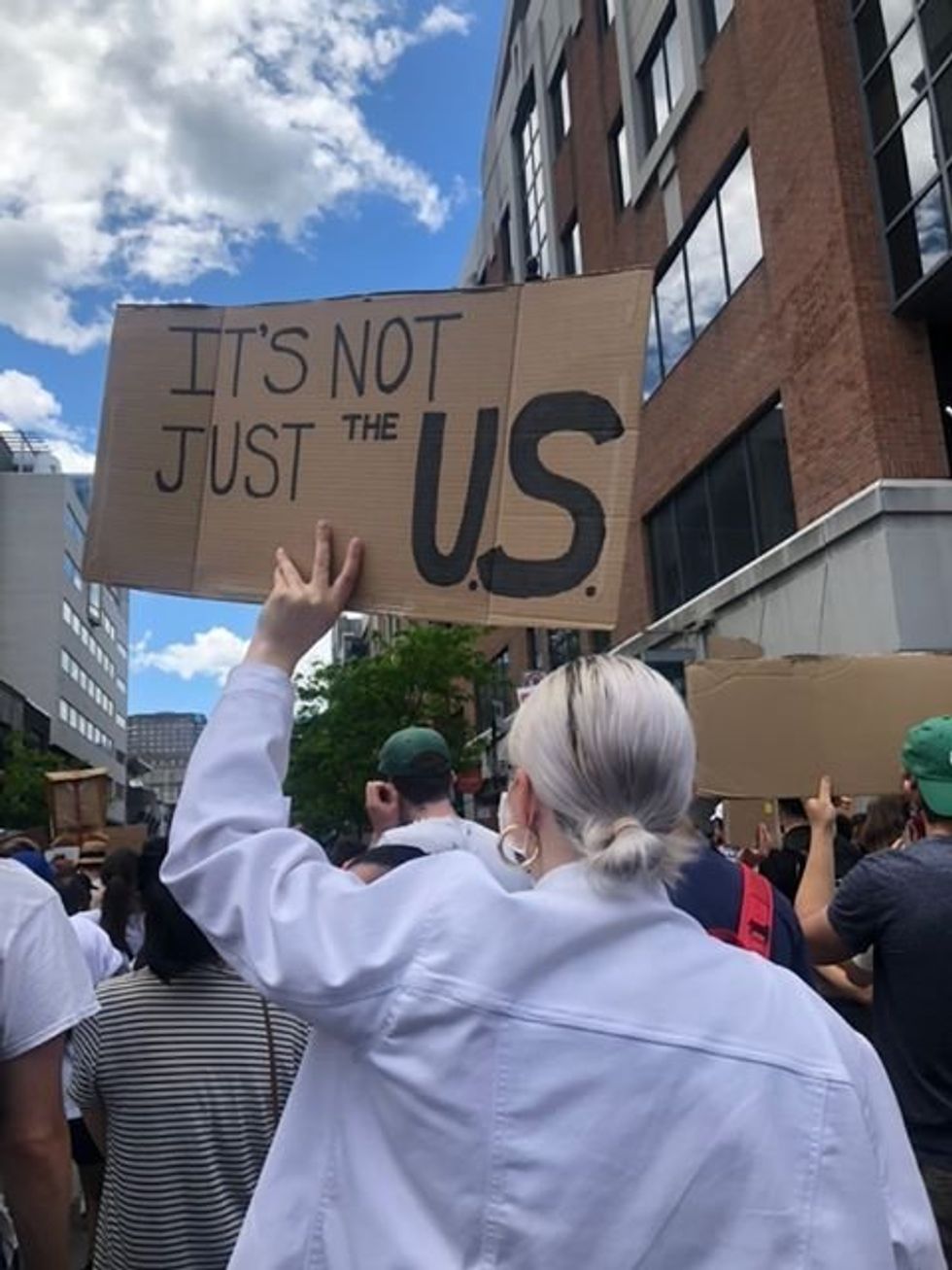 « Ce n'est pas seulement aux États-Unis », soutient cette manifestante. (Traduction libre)
