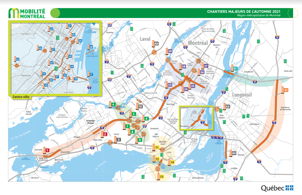 Le ministère des Transports du Québec (MTQ) et Mobilité Montréal ont confirmé, lors d'une séance d'information tenue le mercredi 25 août, que 17 de ses chantiers majeurs seront à Montréal même.