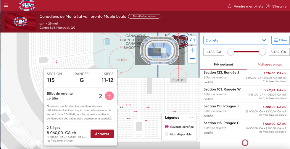 Si ton budget le permet, tu pourrais tout de même te permettre la paire de billets la moins chère sur le site Web de revente certifiée, qui s'établit à 2 976 $. À noter également que « la priorité sera accordée [aux] détenteurs de billets de saison », selon le site de la LNH.
