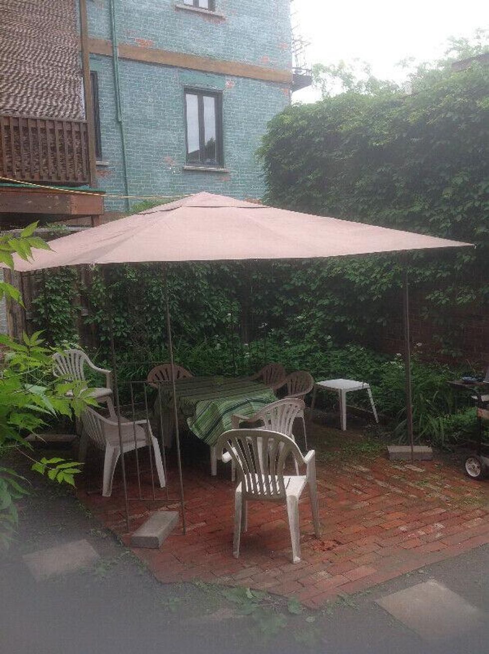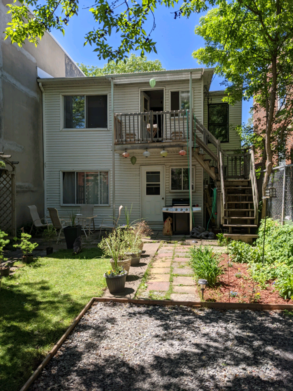 Description : Cet appartement charmant, qui était occupé depuis douze ans par les mêmes locataires, a de quoi faire rêver avec sa grande cour arrière. Un petit jardin, un BBQ, des chaises, une table, tout y est!