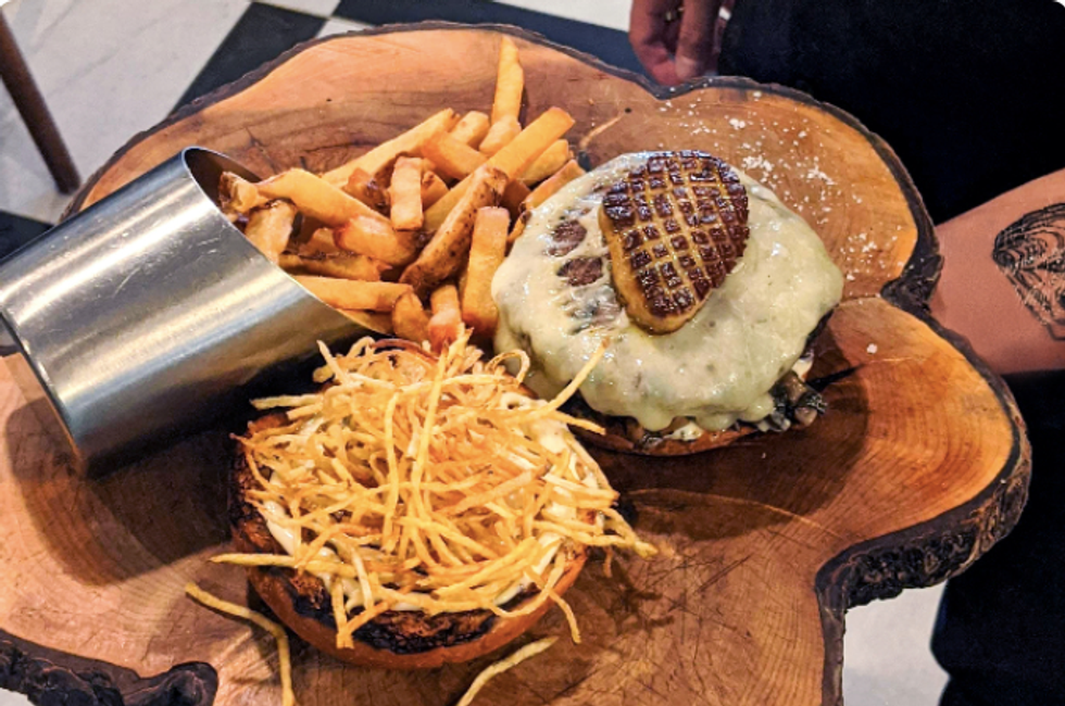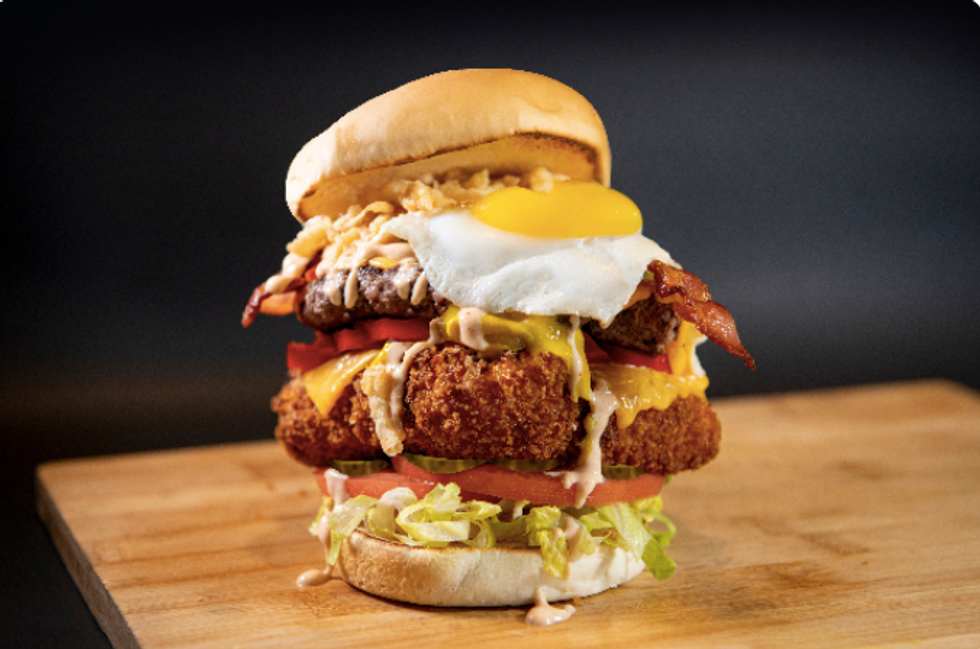 Pourquoi tu dois y aller : Si tu veux « combattre les blues de la COVID », comme l’annonce le restaurant, ce burger est pour toi. Prends des notes, parce qu’il y a de l’ingrédient, ici ; bœuf 100 % Angus, macaroni au fromage frit, œuf frit, triple fromage, bacon fumé, oignons croustillants, poivrons banane épicés, cornichons, laitue, tomate, moutarde et une sauce sud-ouest épicée. M-E-N-O-U-M !