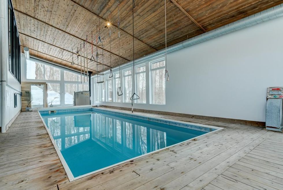 Peu importe la pièce que tu visites, l'endroit profite de beaucoup de luminosité avec ses grandes fenêtres et dans une portion de la maison, on trouve même une grande piscine intérieure.