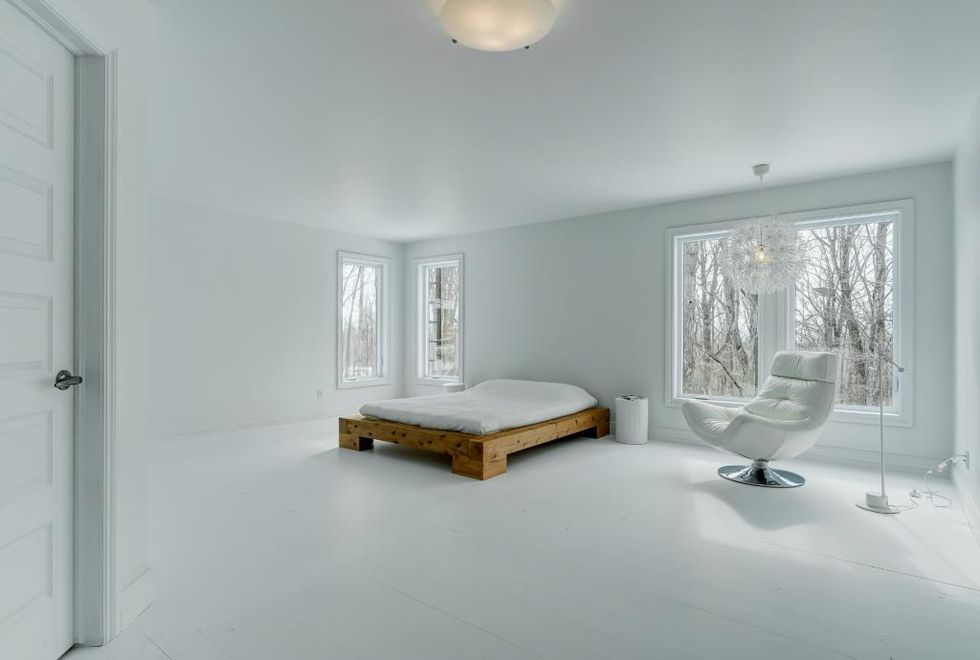 Les chambres sont toutes immenses et remarquables, mais la chambre principale à l'étage est particulièrement spéciale avec son décor blanc.