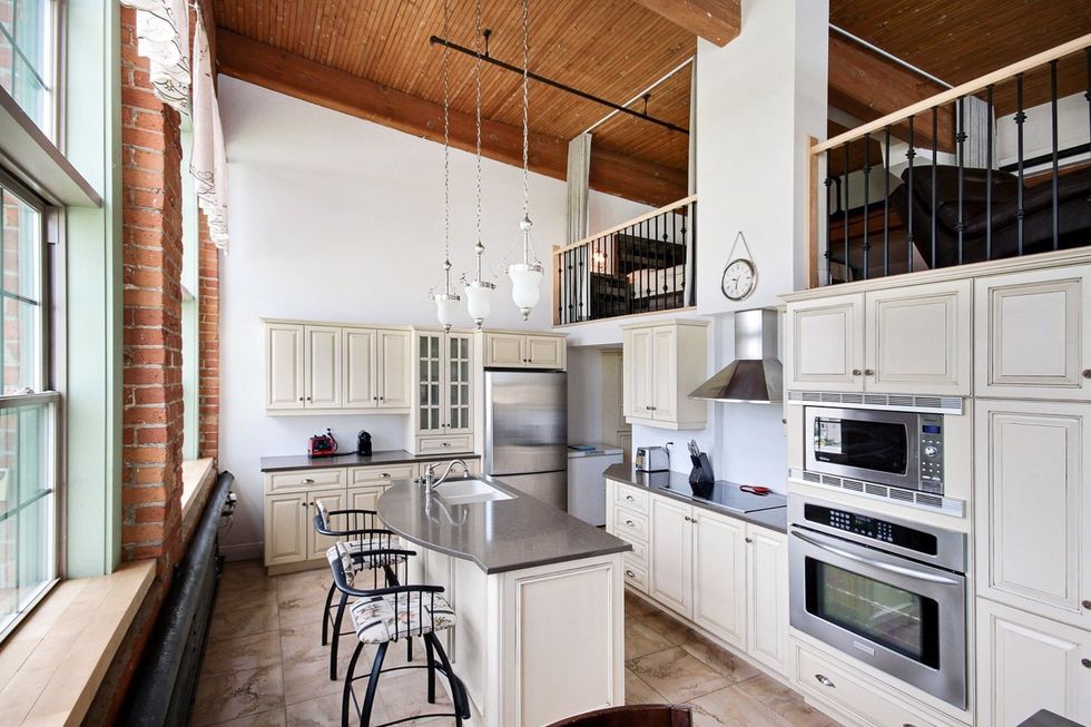 Il s'agit d'un immense loft de 1 950 pieds carrés aménagé sur deux étages dans l'immeuble des Lofts Saint-Louis et il est affiché à 469 000 $.