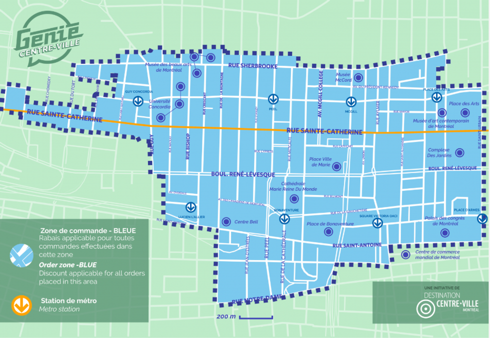 Le centre-ville se vide, de ses travailleurs, mais aussi de ses consommateurs. Pour tenter de pallier cette crise, la société de développement commercial de ce secteur tente une nouvelle offensive en faisant entrer un nouveau joueur dans l'équation. Grâce à Génie centre-ville, un service de livraison ultra rapide, les Montréalais peuvent maintenant se faire livrer leurs emplettes du centre-ville.