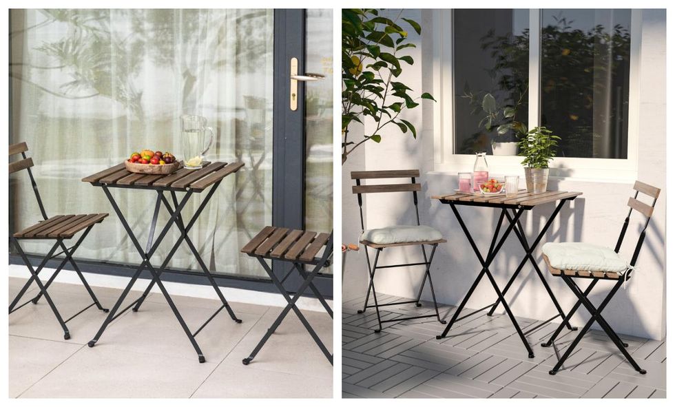 Détails : Le même petit ensemble en bois avec une base de métal est offert dans les deux boutiques, mais il est à environ 20 % du prix de Wayfair lorsque tu l'achètes au IKEA. Dans les deux cas, il n'y a pas de coussins d'inclus.