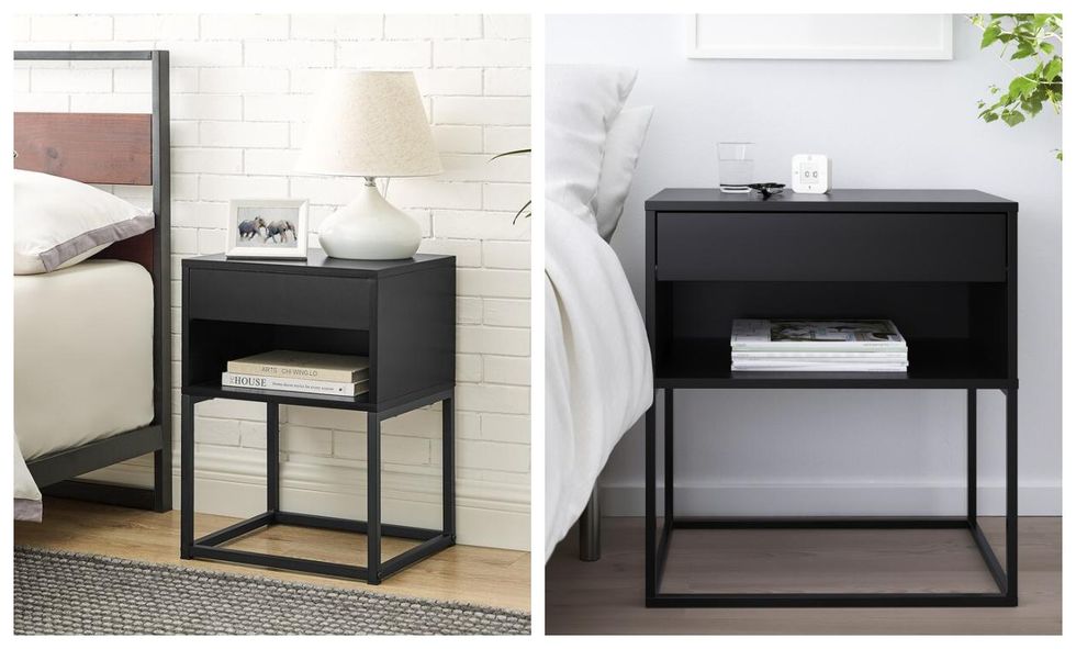 Détails : La variété de tables de chevet présentée sur les deux sites est plutôt différente, mais celles-ci sont pratiquement identiques. Il suffit de t'assurer que les mesures concordent avec l'espace disponible dans la chambre!