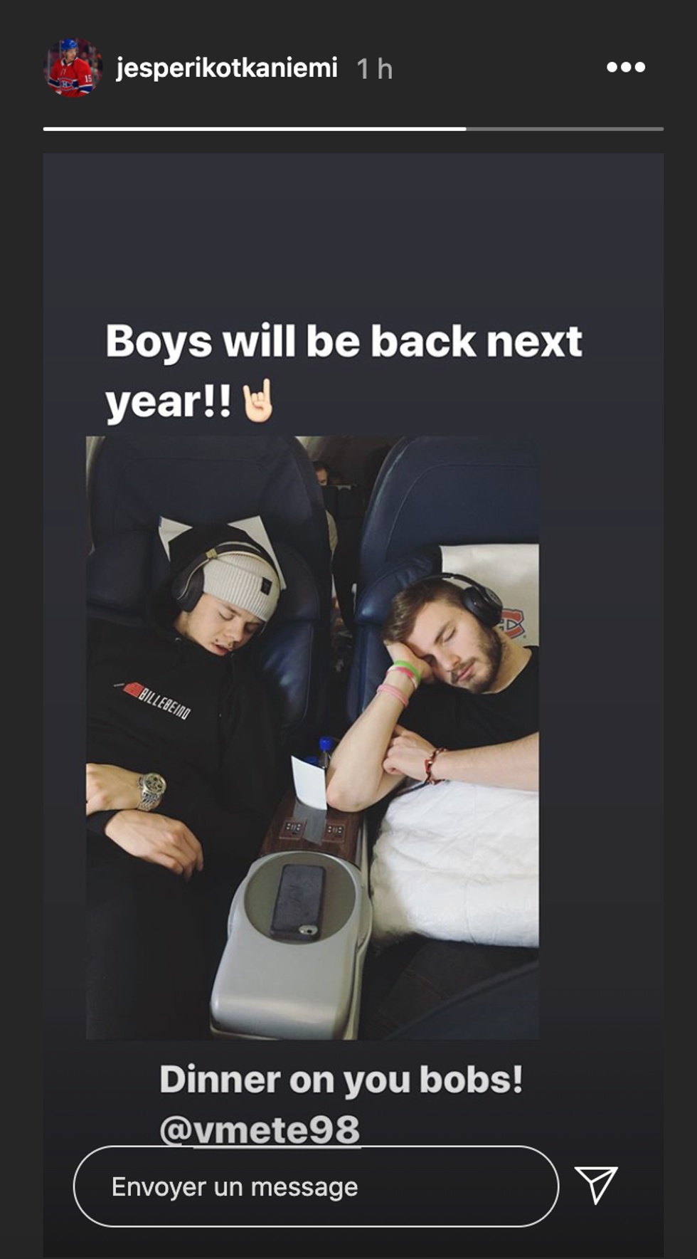 Bien heureux que le défenseur ait signé pour une autre année, Kotkaniemi a justement partagé la semaine dernière une photo de lui et son ami.