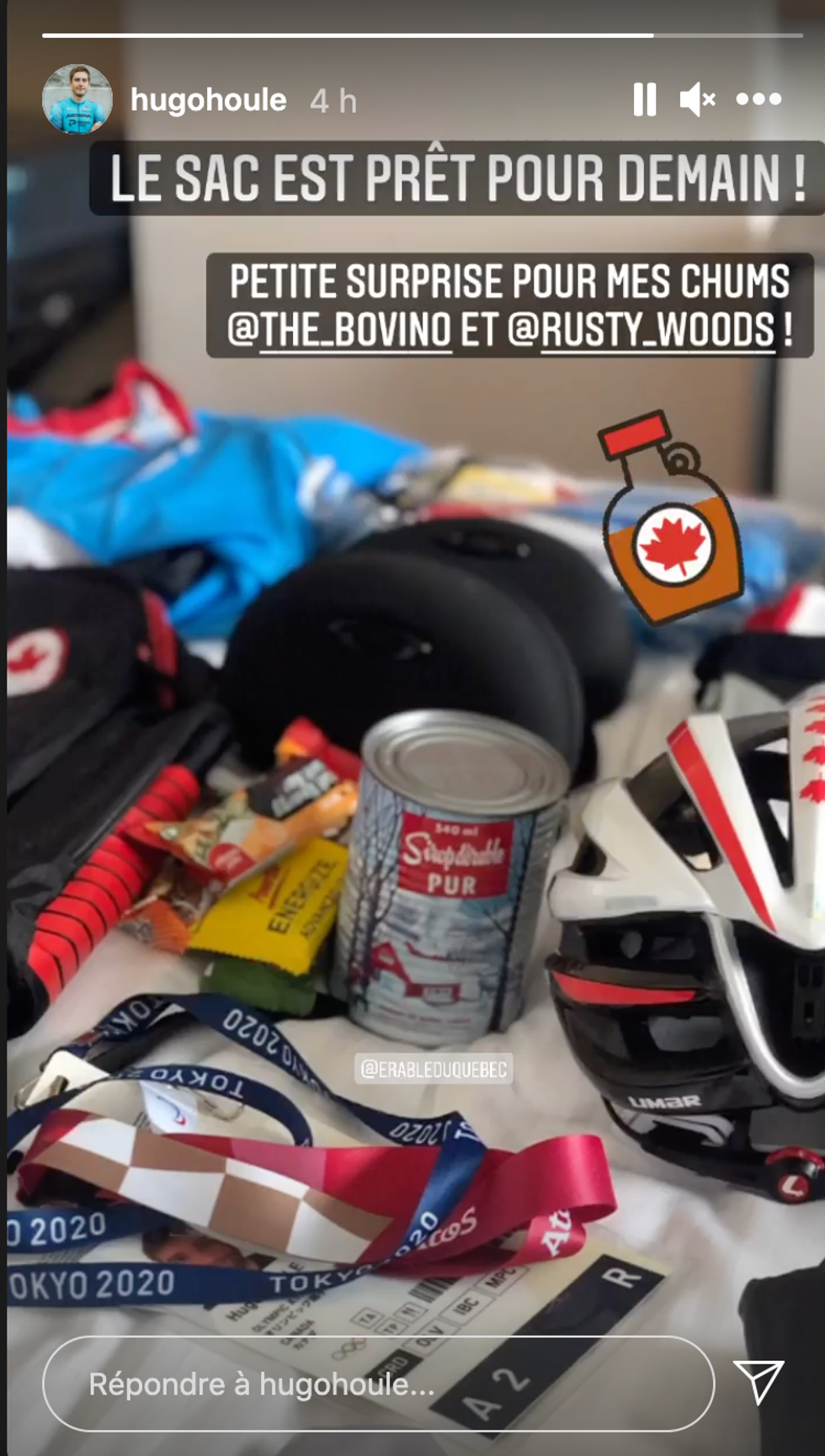 Si les Jeux olympiques de Tokyo ont commencé officiellement ce 23 juillet, les athlètes sont arrivé.es au village depuis quelques jours déjà et iels se préparent pour leurs compétitions. D'ailleurs, question de ne pas trop être dépaysé, le cycliste québécois Hugo Houle a amené un peu du Québec dans sa valise : une canne de sirop d'érable.