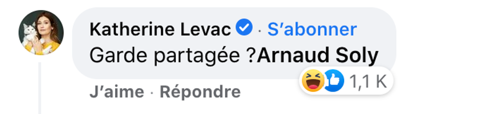 Il y a même l'humoriste Katherine Levac qui a identifié Arnaud Soly en commentaire pour lui proposer la garde partagée.