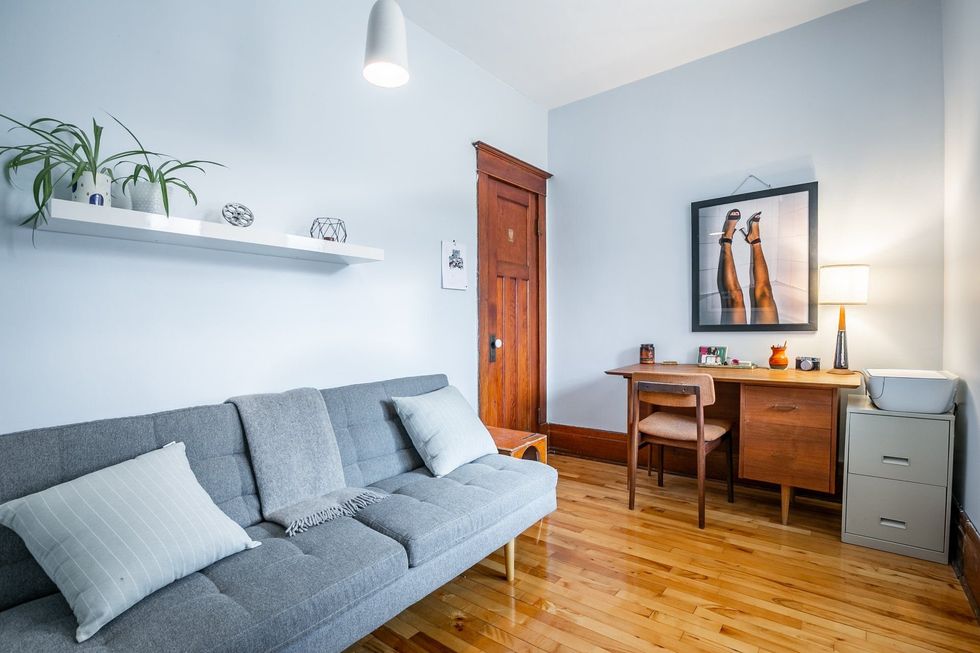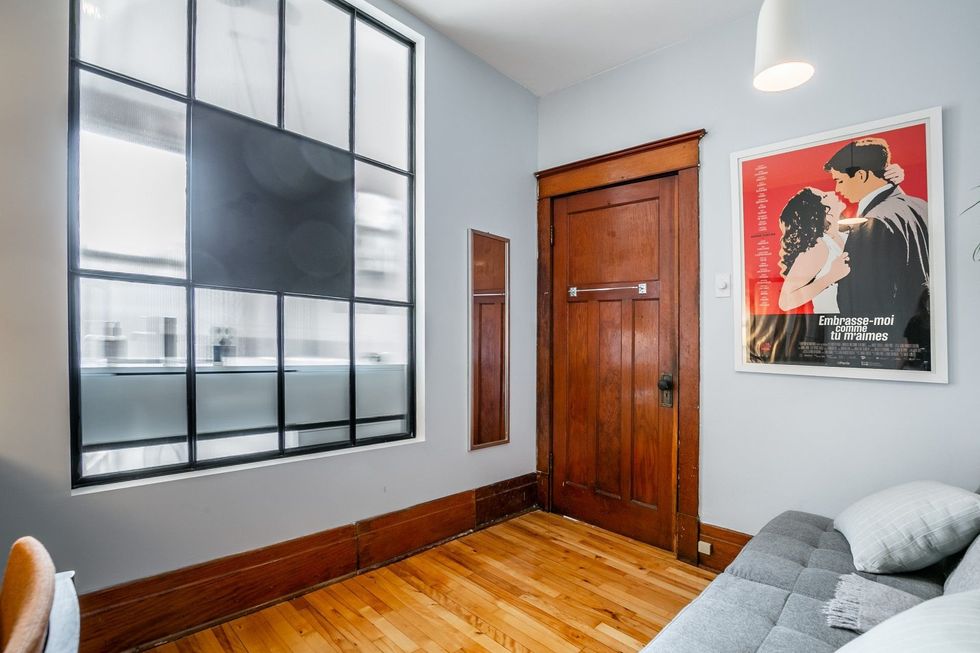Il est affiché à 417 000 $, les plafonds sont hauts et les pièces sont plutôt vastes pour un immeuble situé en plein coeur de la métropole. Le condo est composé de sept pièces, dont deux chambres à coucher, ainsi qu'une terrasse.