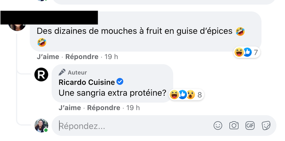 « Une sangria extra protéine? », a lancé le ou la gestionnaire de la page Ricardo Cuisine.