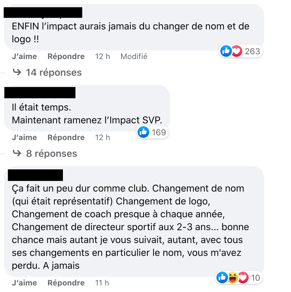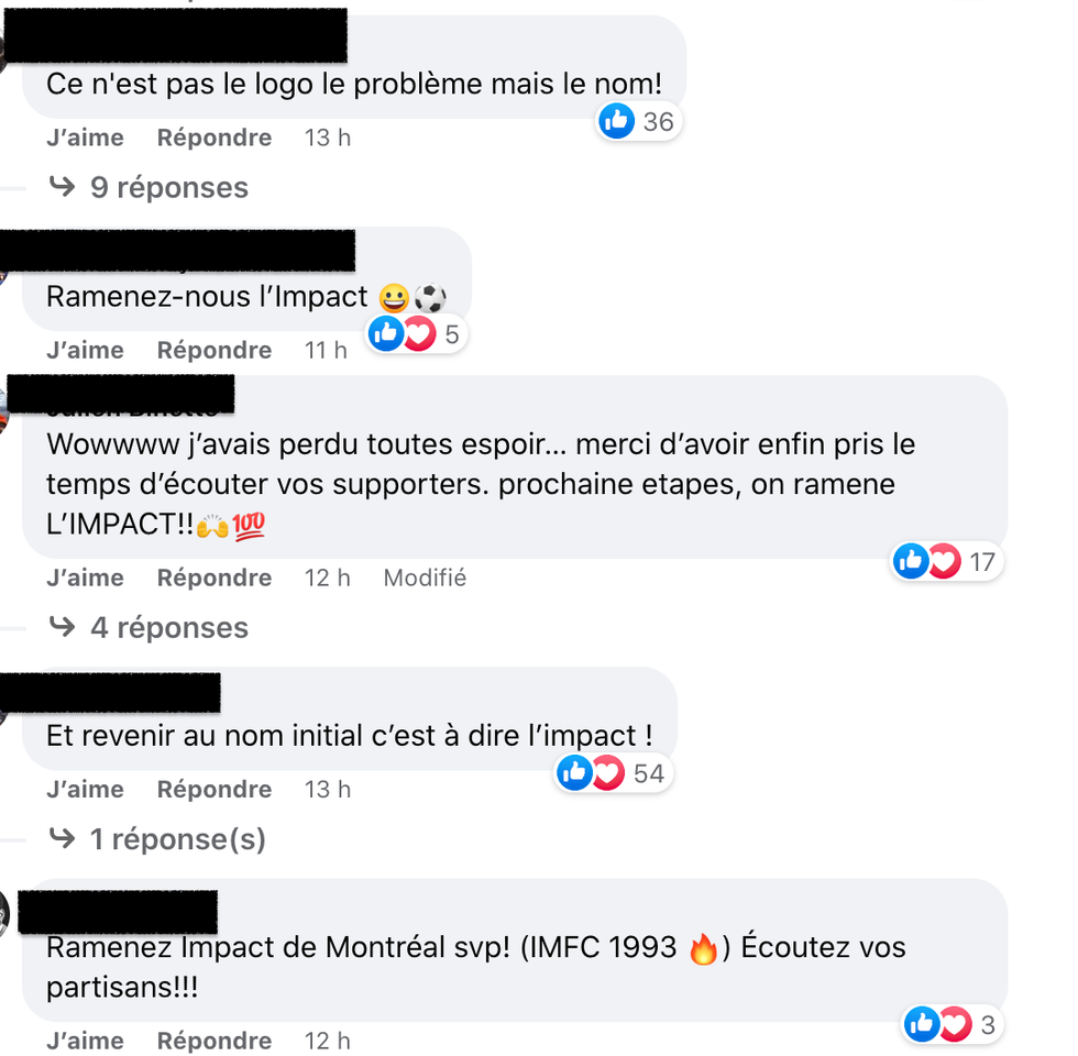 Parmi les milliers de commentaires laissés sous la publication, le même message revient à maintes reprises et les Montréalai.ses souhaitent revoir l'Impact sur les maillots des joueurs.