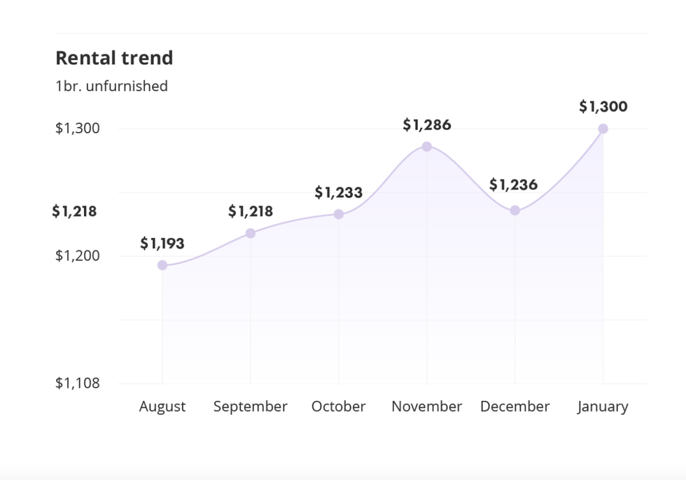 Alors que le prix moyen pour la location d'un appartement à Montréal était de 1 236 $ en décembre 2021, celui-ci a connu une hausse considérable, en seulement quelques semaines, atteignant, en ce début d'année 2022, 1 300 $ par mois. Une augmentation de 64 $ et un record depuis août 2021.