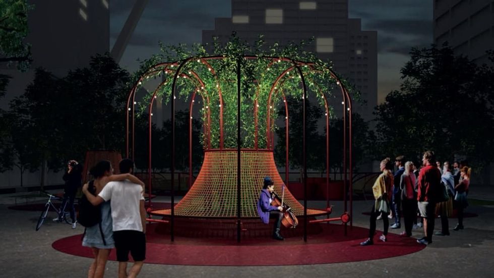 Après un concours de design visant à agrémenter la terrasse de mobilier urbain, Montréal a choisi la proposition de l'équipe Alto Design et Dikini avec Lateral + Induktion.