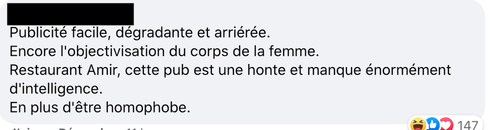 Le jeudi 20 mai, la chaîne de restaurants Amir a publié une image sur Facebook qui a causé plusieurs réactions mitigées en commentaires.