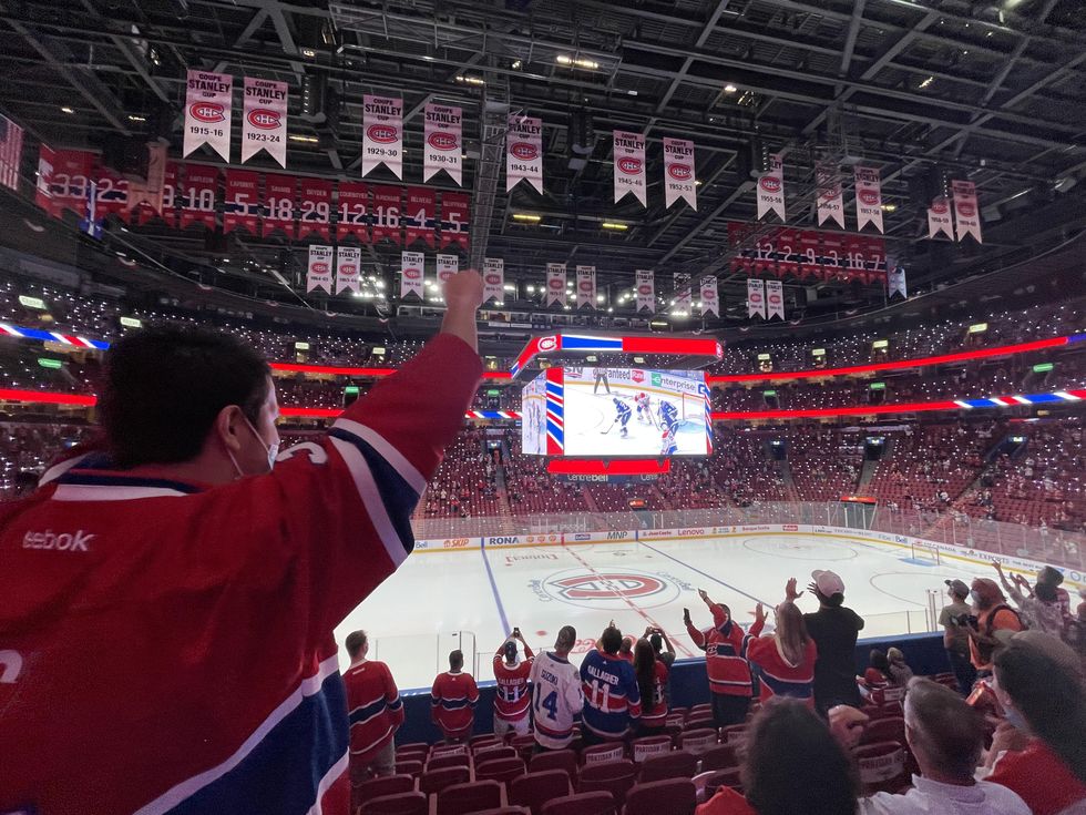 Ce mercredi 30 juin, lors de la deuxième rencontre des Canadiens de Montréal face au Lightning de Tampa Bay, le Centre Bell accueillait jusqu'à 3 500 partisan.es pour visionner la retransmission de la partie sur ses écrans géants.