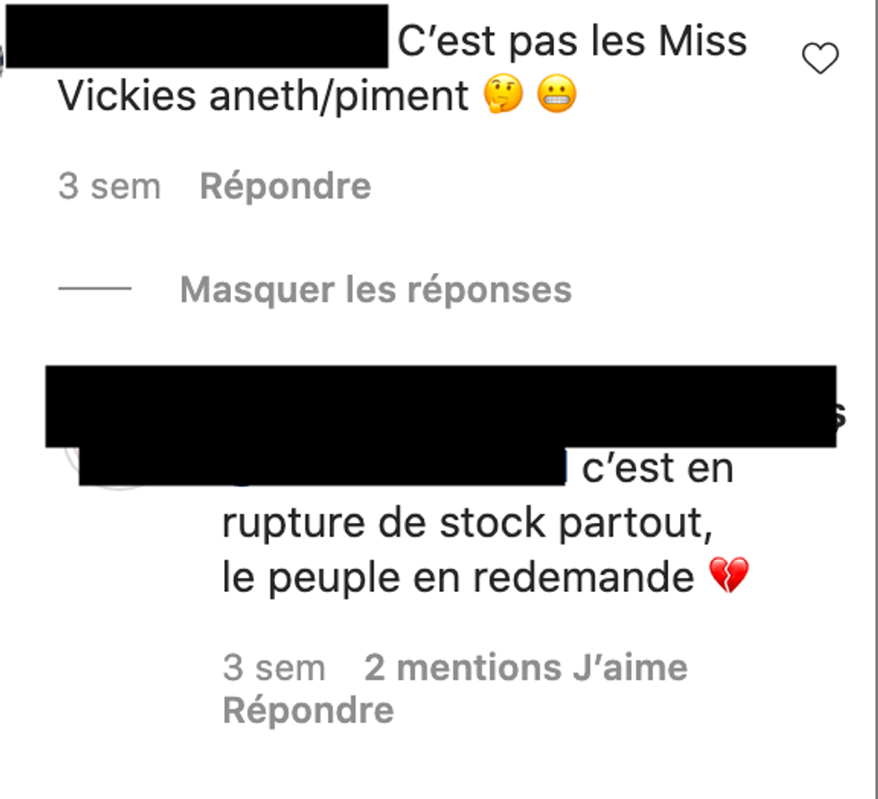 Selon ce que l'entreprise Miss Vickie's a mentionné à Narcity, « la réponse positive a été si formidable », qu'elle a dû mettre les bouchées doubles pour éviter les ruptures de stock.