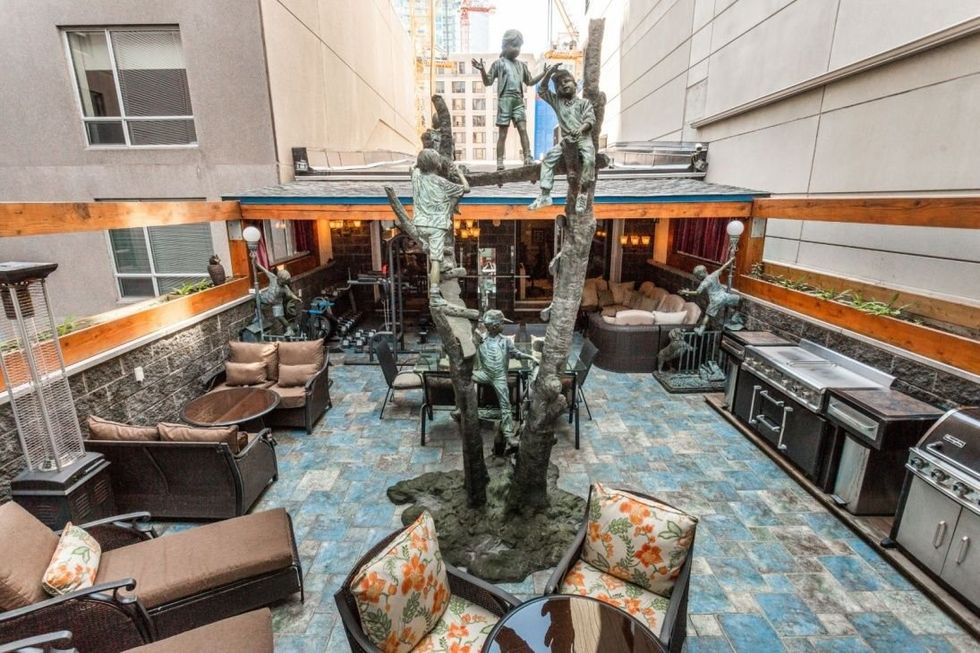 La cerise sur le sundae revient à la terrasse, qui se retrouve sur le toit et couvre 1 000 pieds carrés de superficie.