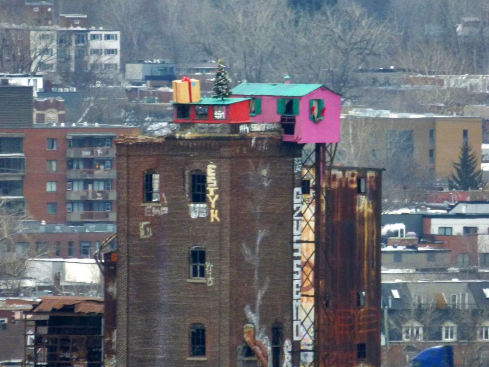 La mystérieuse maison rose au sommet d'un silo à Montréal a été décorée pour Noël (PHOTOS)