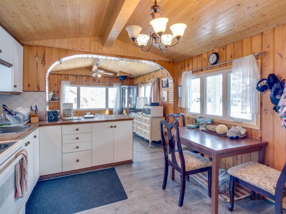 Description : Cette maison mobile est située « dans l'un des meilleurs parcs du Québec », selon ce qu'on peut lire sur l'annonce. La demeure, entièrement rénovée en 2017-2018, comporte une seule chambre à coucher. À noter que la vente n'inclut pas le terrain qui est en location pour 357 $/mois.