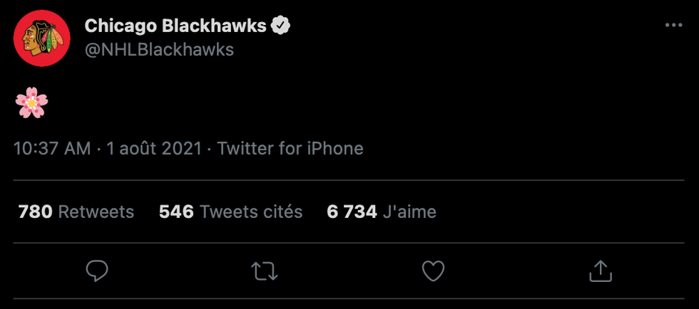 Sans confirmer la nouvelle officiellement, les Blackhawks de Chicago ont eux tweeté l'émoji d'une fleur. Comme Marc-André Fleury est surnommé Flower, il semblerait que l'information soit confirmée.
