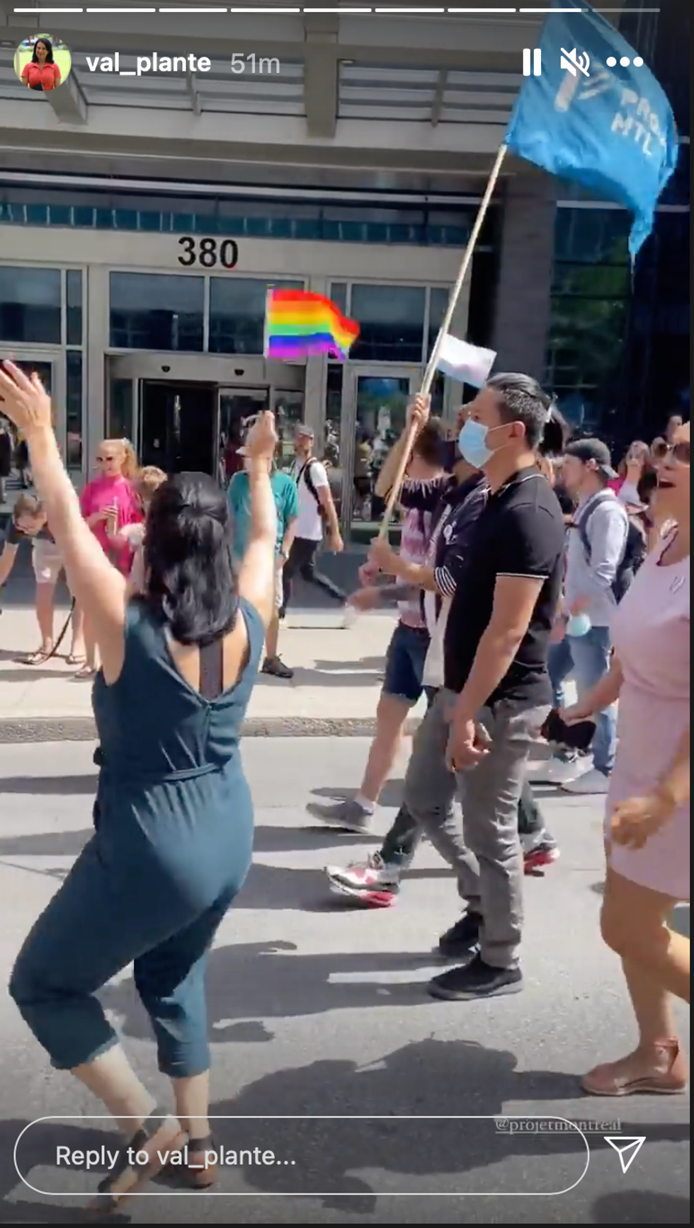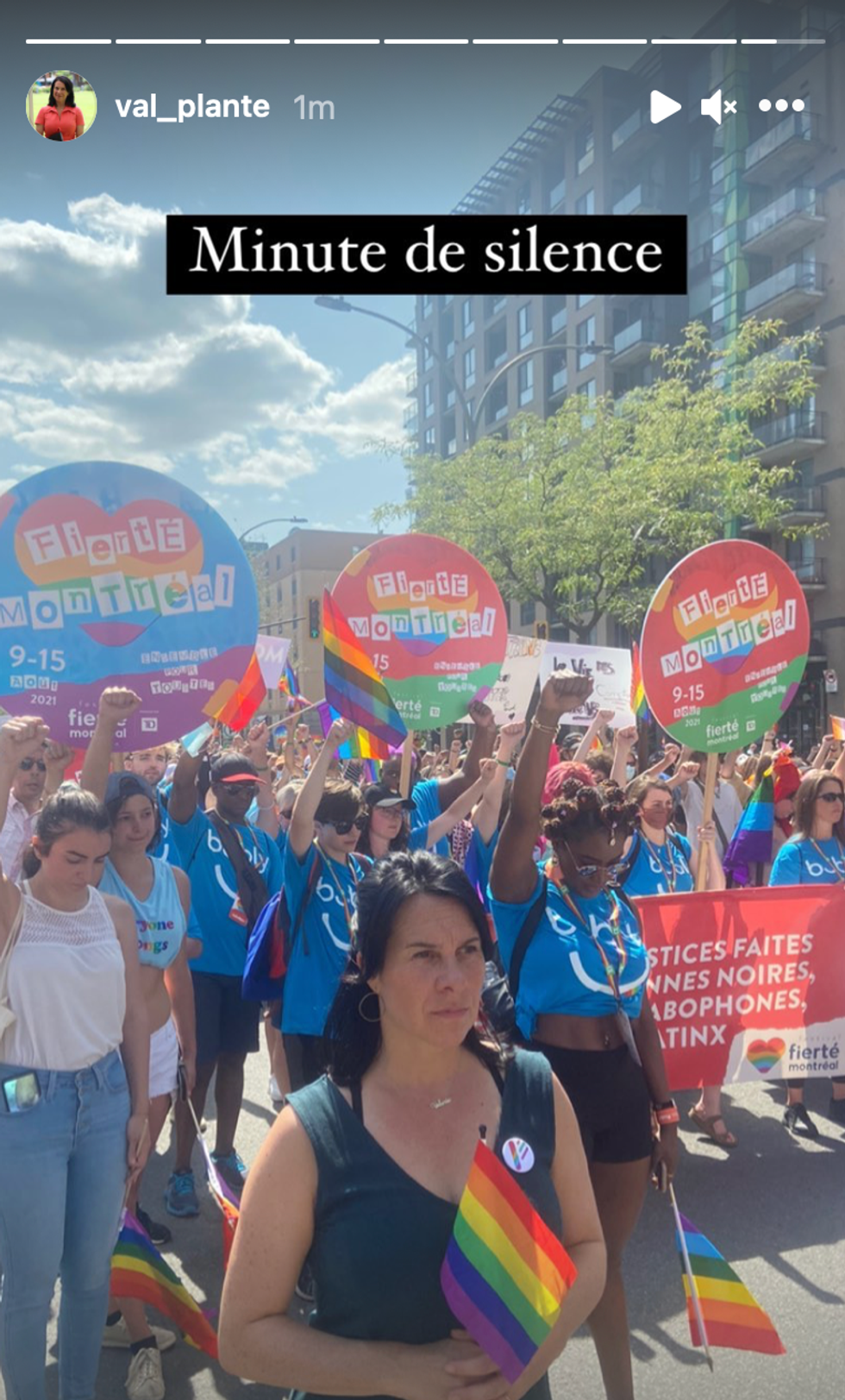 Sur les stories Instagram de Valérie Plante, on peut voir qu'elle a été à la Marche de la Fierté en compagnie de sa sœur et de sa filleule. Elle a également participé à la minute de silence.