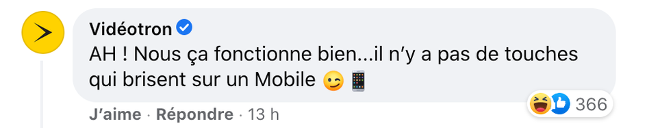 C'est quelques mentions plus loin que Vidéotron a ajouté son grain de sel en disant ne pas avoir de problème avec leur clavier.