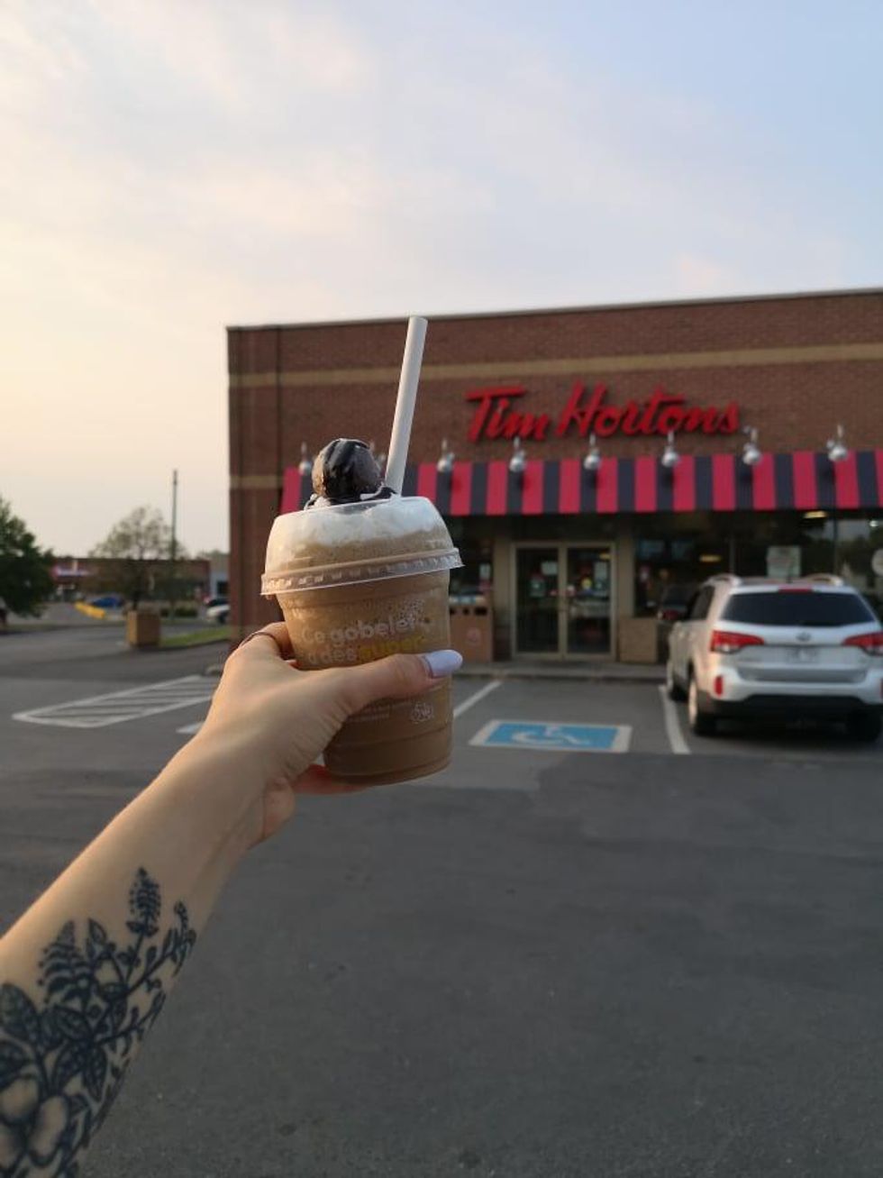 Cela dit pour l'essayer, il suffit de commander un cappuccino glacé avec de la crème fouettée, un Timbit au chocolat déposé sur le dessus et un coulis au chocolat.