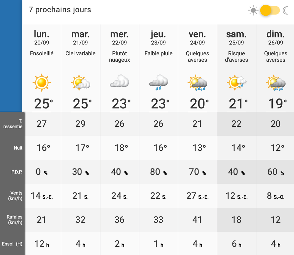 Prépare ton habit d'été préféré pour le jour le plus chaud de la semaine qui sera ce mardi 21 septembre : 25 degrés sont attendus et il fera 29 degrés de températures ressenties sur la métropole.