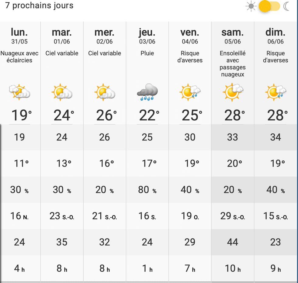 Il a fait froid pour ta première terrasse ce week-end du 28 mai ? Eh bien tu vas pouvoir en profiter en gougounes ces prochains jours puisque la météo de la semaine prochaine indique il va faire jusqu'à 34 degrés de températures ressenties à Montréal.