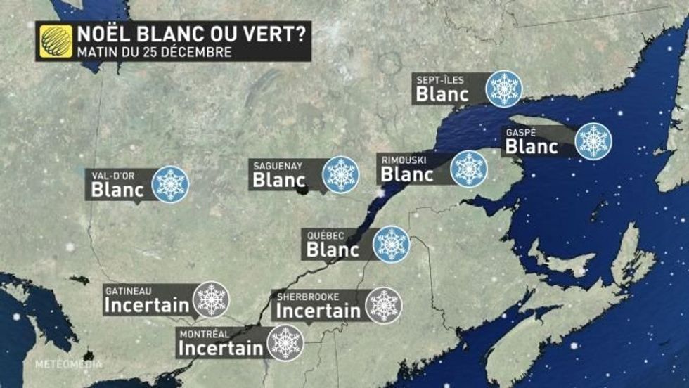 Eh bien selon Météomédia, la majorité du Québec aura droit à son Noël blanc, sauf dans le cas de quatre régions, où l'incertitude règne toujours.