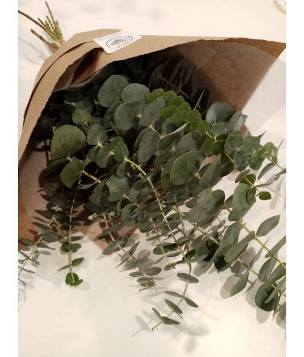Détails : Ce bouquet est bien spécial puisqu'il est composé de branches d'eucalyptus fraîches, mais aussi de tiges de coton.