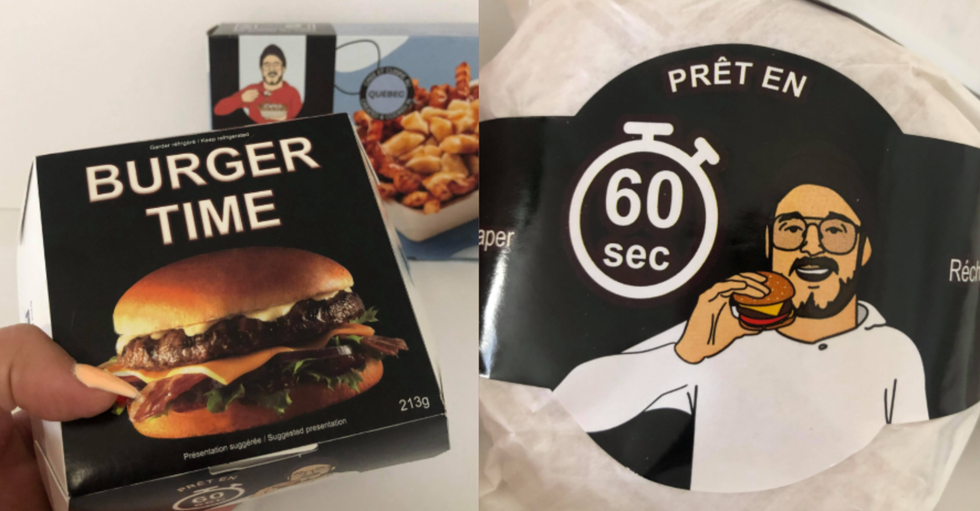 Pour commencer, je dois dire que j'adore et je déteste Primeau pour la même raison; mon Dieu que son branding est fort. Alors que je suis la première à trouver ça ridicule de mettre sa face sur ses produits, je suis aussi très impressionnée par la portée et l'influence de cet homme d'affaires sur les Québécois. Il a développé un mode de vie autour de sa marque, et ça marche. La preuve, c'est qu'il a réussi à me faire acheter un burger à mettre dans le four à micro-ondes.