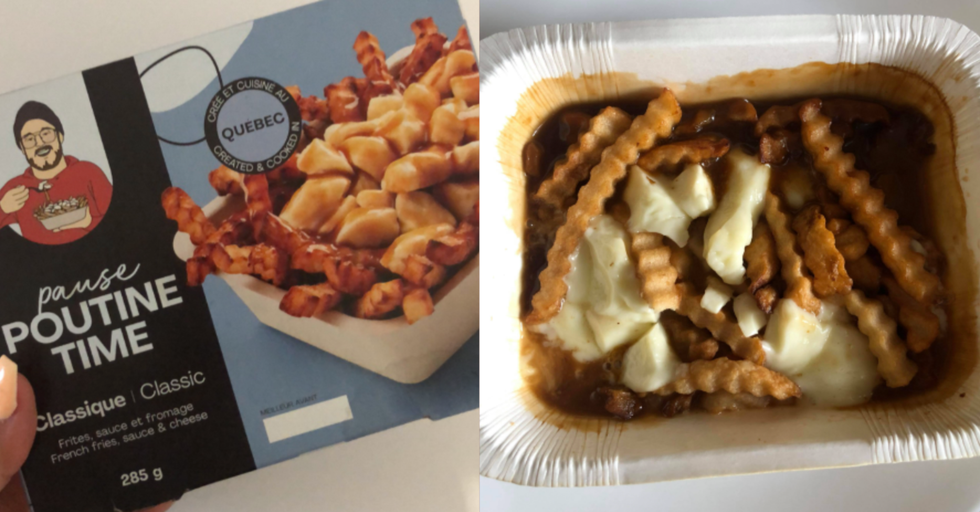 Tant qu'à me plonger dans la « bouffe de dépanneur », j'ai décidé de donner une chance à la poutine, aussi vendue chez Couche-Tard pour 5 $. Elle vient dans une boîte de carton, et doit être mise au four à micro-ondes.